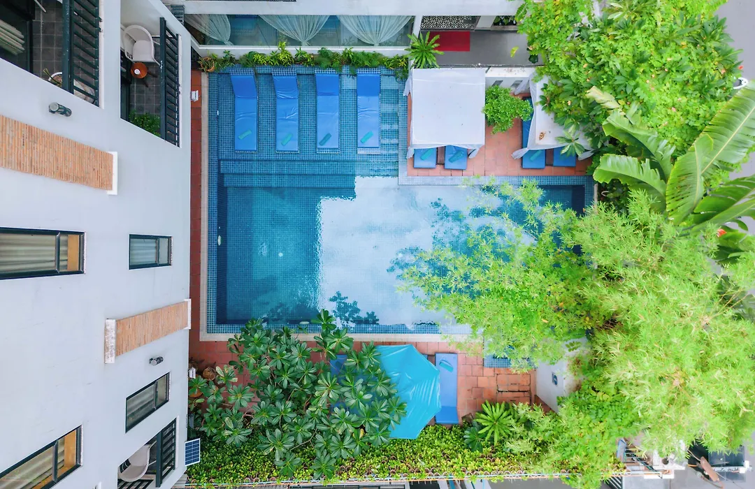 Với tầm nhìn ra hồ bơi, các phòng nghỉ đều có phòng thay quần áo, ghế sofa và bàn làm việc. Du khách có thể sử dụng phòng tắm đứng và nhà vệ sinh riêng.
